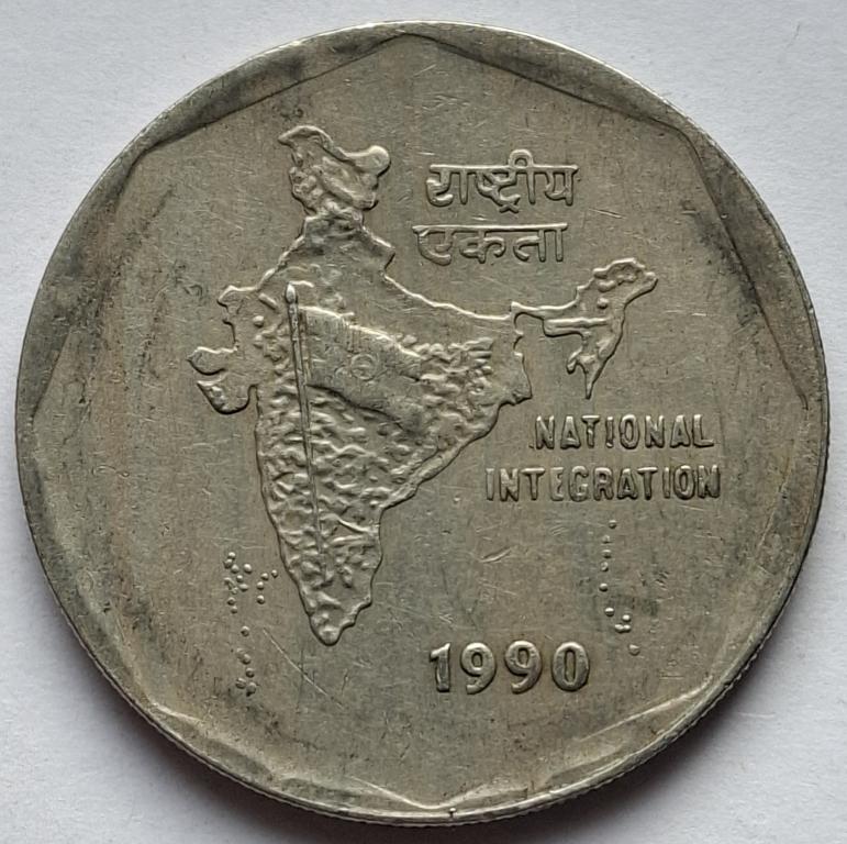 Индия 2 рупии 1990года