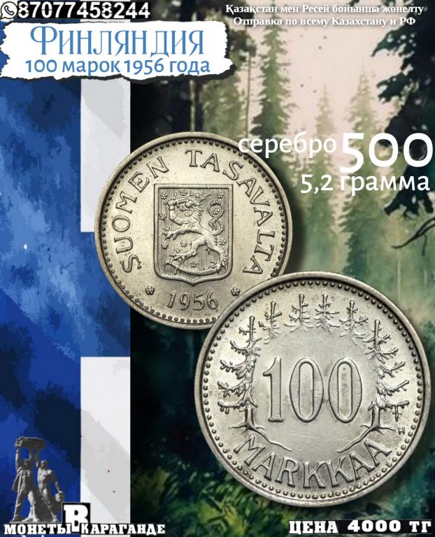 Финляндия 100 марок 1956 серебро