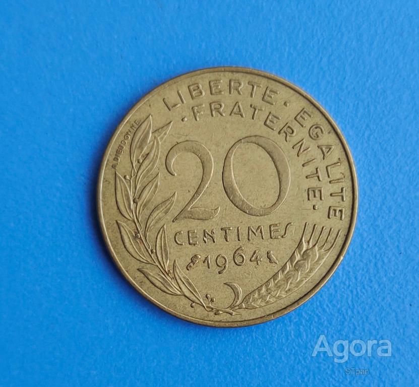 Франция 20 сантимов 1964 год.