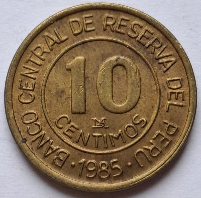 Перу 10сентимо 1985года.