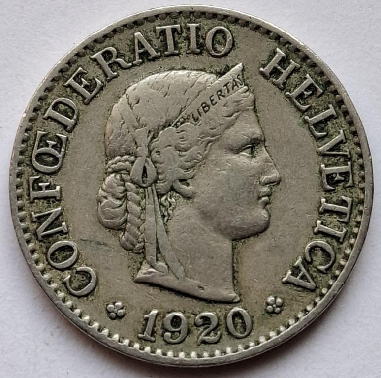 Швейцария 10 раппенов 1920года