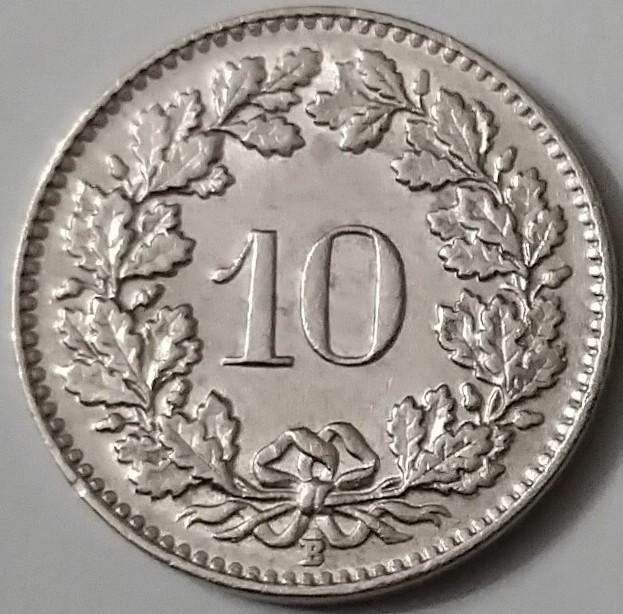 Швейцария 10 раппенов 1962 года